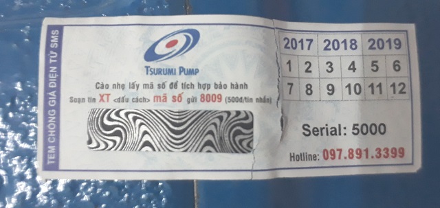 Quý khách hàng lưu ý: tất cả các sản phẩm máy bơm nước thải Tsurumi khi xuất kho đều được dán TEM CHỒNG HÀNG GIẢ. Mã số XT trên tem cũng chính là mã số bảo hành. Để kiểm tra hàng chính hãng, quý khách vui lòng thực hiện thao tác cào mã vạch và nhắn tin SMS để xác nhận. Ngoài ra, hàng nhập khẩu luôn có đầy đủ giấy tờ chứng nhận nguồn gốc (CO), chất lượng (CQ) và có danh mục đóng gói hàng hóa (Packing list) kèm them. Vì vậy, quý khách hãy kiểm tra kỹ các thông tin trên để tránh mua phải hàng giảm, hàng nhái kém chất lượng.