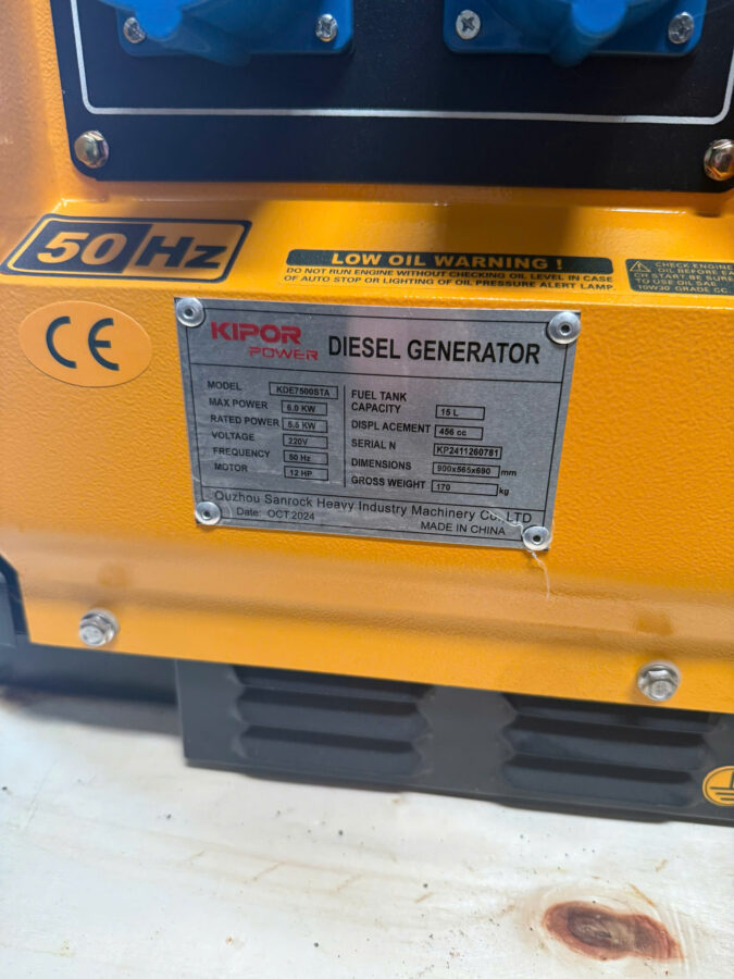 Máy Phát Điện Dầu KIPOR KDE-7500STA (có ác quy) : 23.000.000